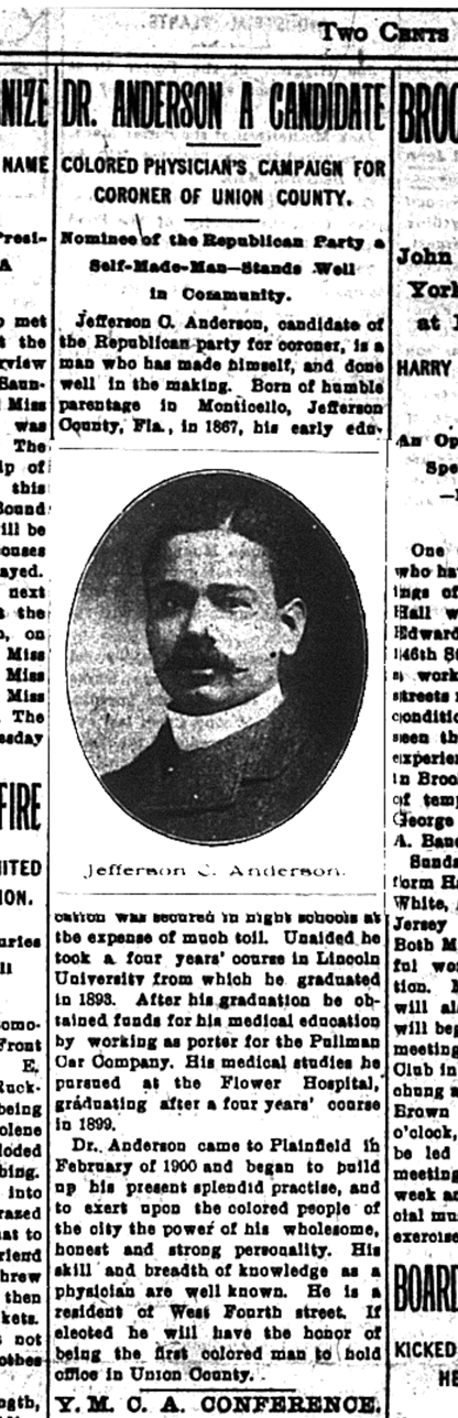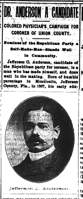 Image: Dr. Jefferson C. Anderson campaigns for Coroner of Union County [Daily Press, October 24, 1903, page 1]