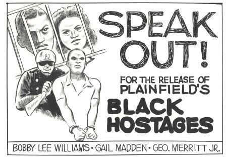 The Case of Plainfield's Black Hostages: Bobby Lee Williams, Gail Madden, George Merritt, Jr. Issued by Plainfield Joint Defense Committee, 1969.