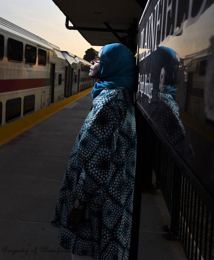 This photograph received the Winning Award and was submitted by local photographer, Wajid Abdur-Razzaq. It is a picture of Barbara Abdur-Razzaq at the Plainfield Train Station.