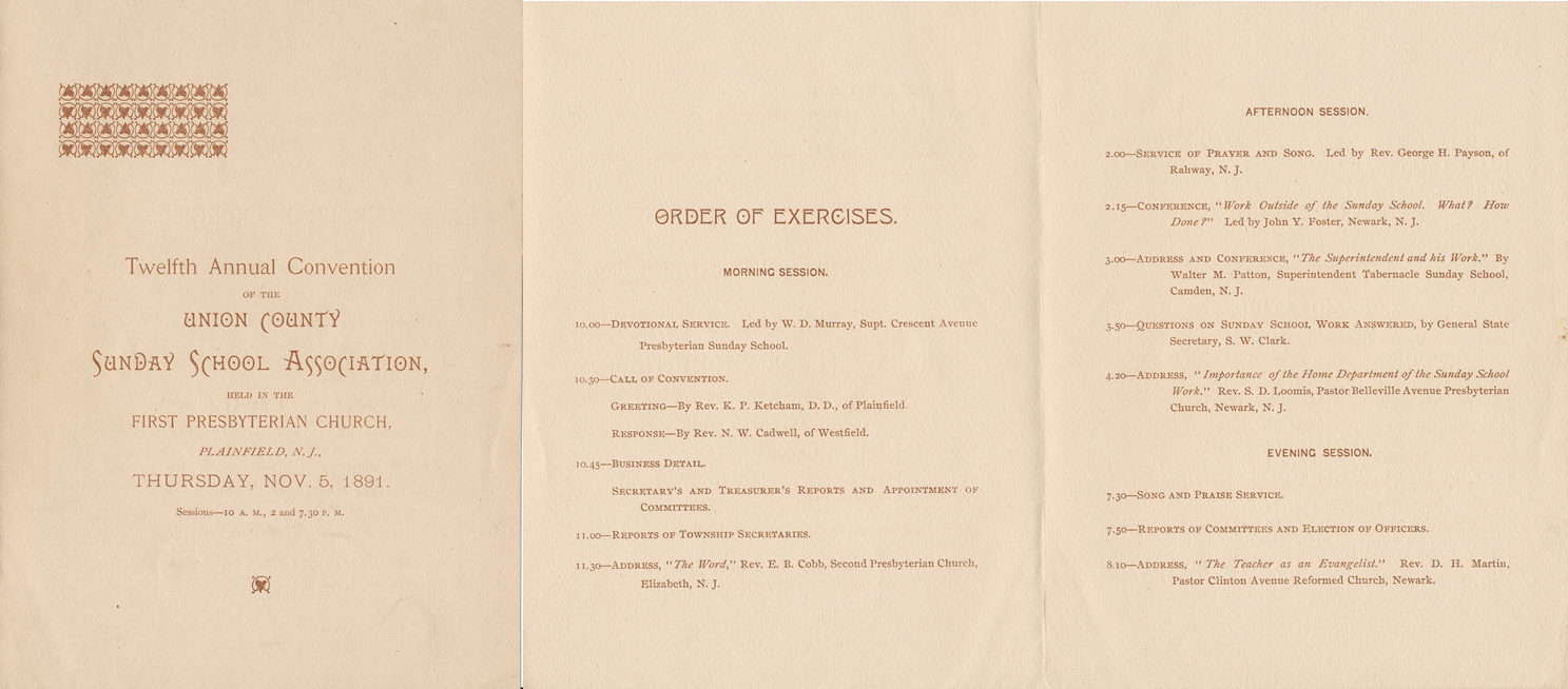 The First Presbyterian Church was organized on July 10, 1825, and was the fourth church to be established in Plainfield. The cornerstone of the first church building was laid later that year, and the building completed in 1827. By 1855, the structure was too small, so it was divided and moved, and a new brick church was built. Photographs of the 1855 structure are very rare, and the Library does not have one in our collection. In 1888, a new church was erected. Years later, in 1952, the church sold the property and made plans to finance the building of a new structure on East Front Street, on what was known as the Meade Estate. It was completed in 1955. The old property became the location of Bamberger's Department Store, at the northwest corner of East Front Street and Roosevelt Avenue, in 1954.