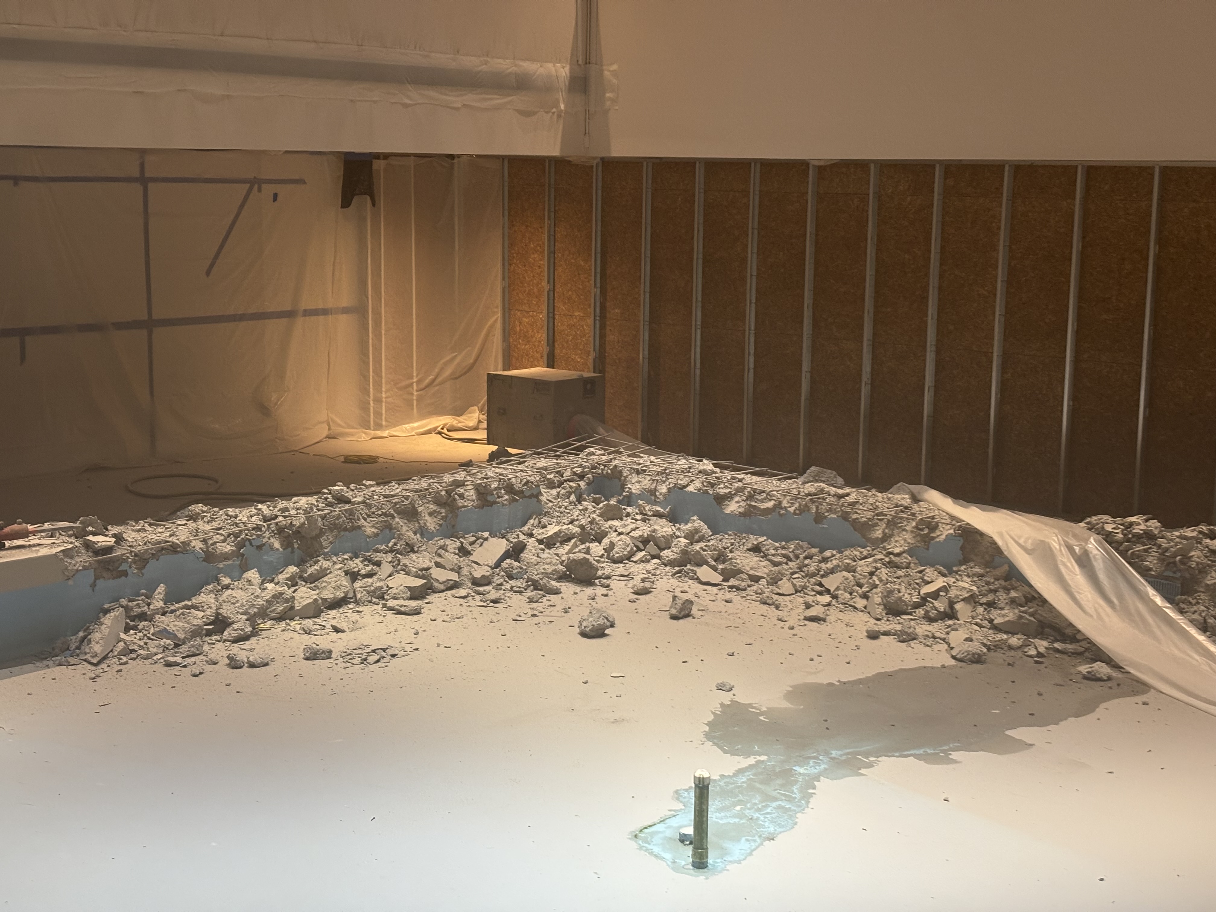Lower level fountain has been demolished. The base is now being prepared for structural steel to be installed.