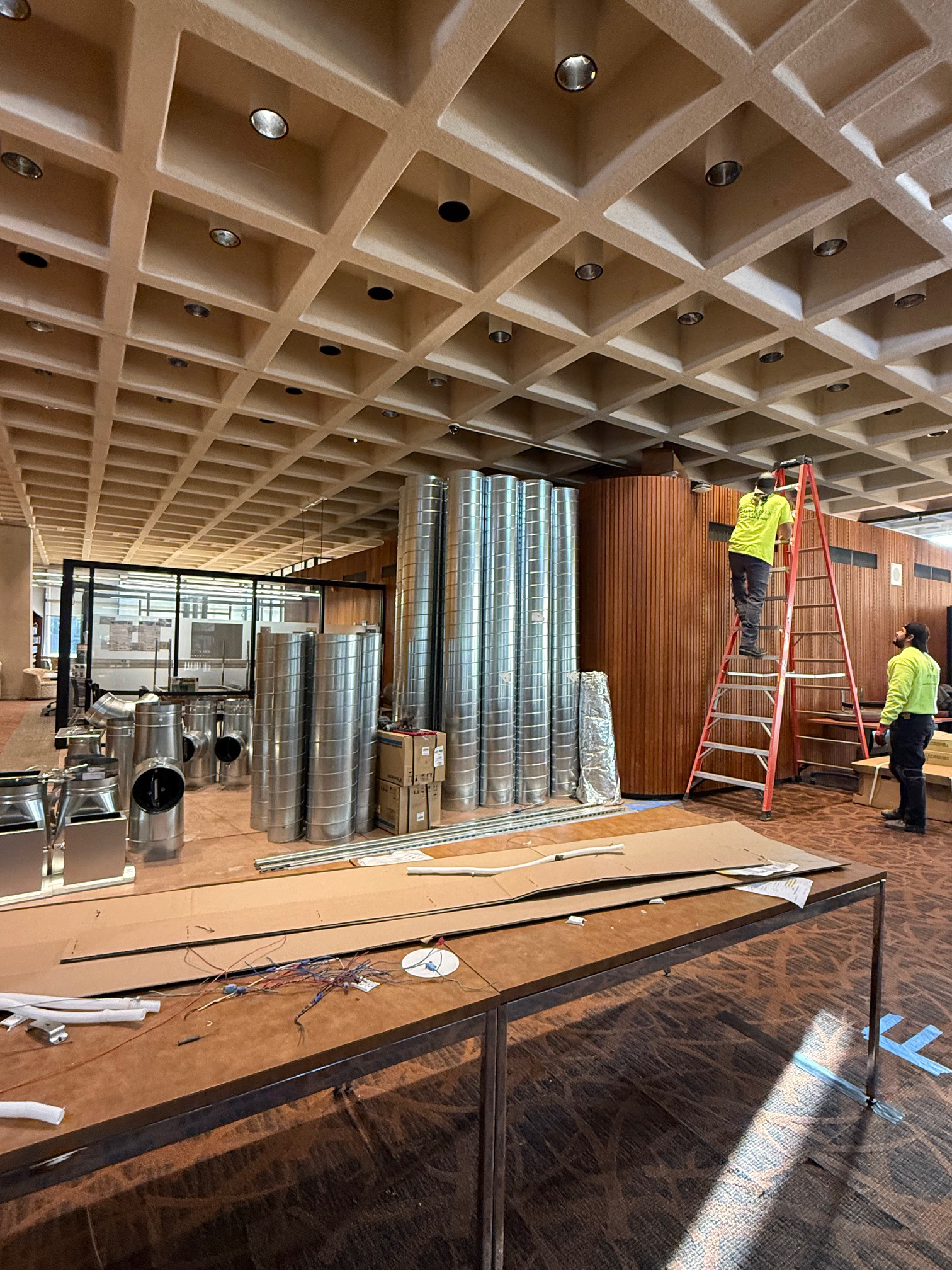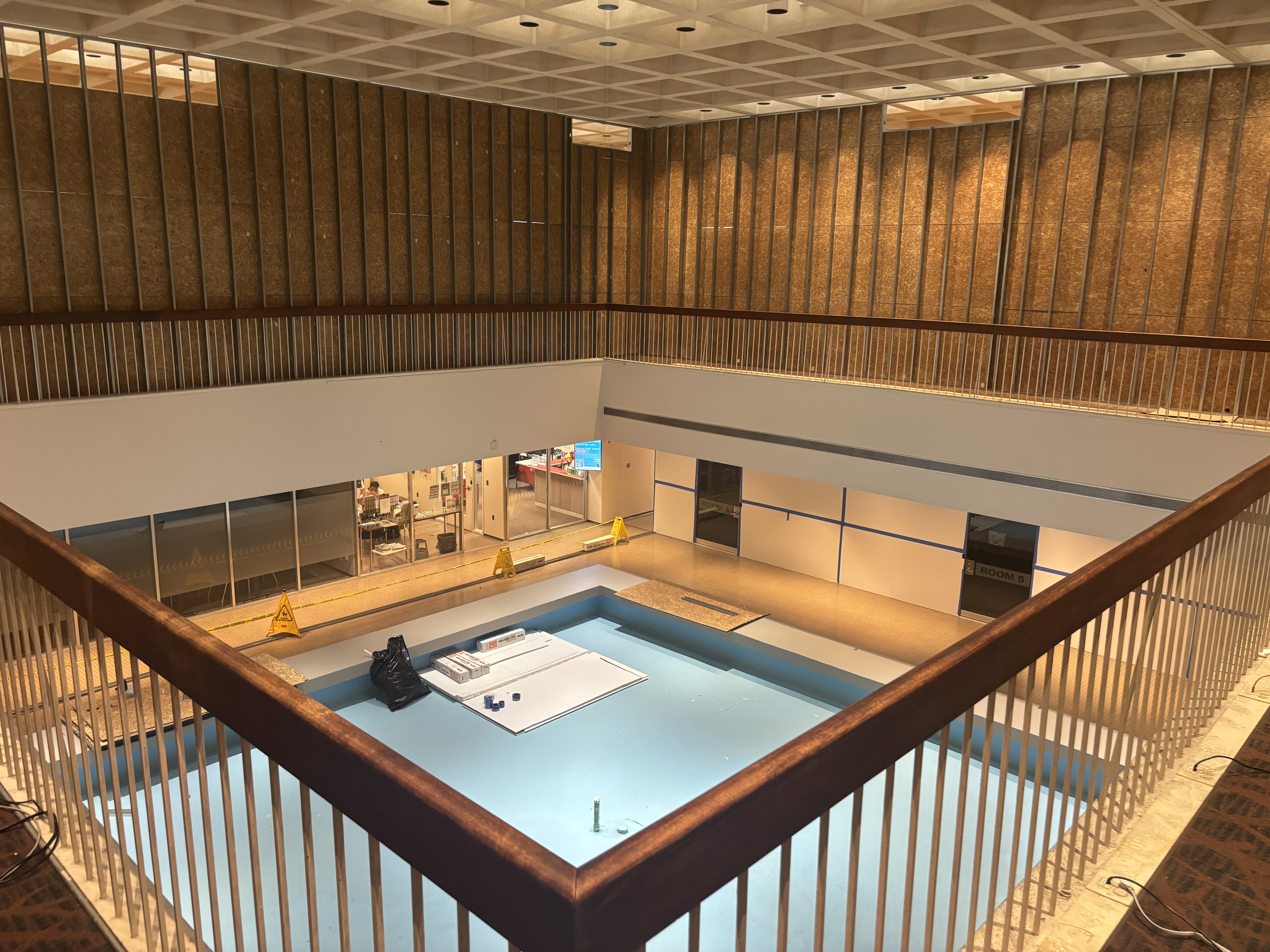 The walls were constructed to contain both dust and sound as we prepare the lower level for the new Atrium infill project.