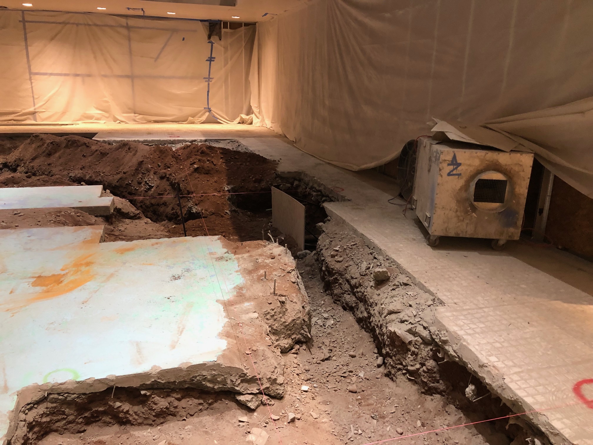Demolition of lower level fountain. |