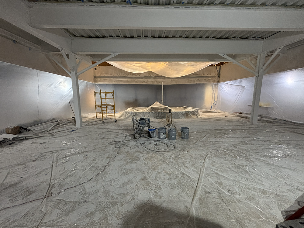 Lower level before concrete pumping for new columns. |